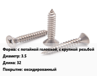 Саморез с потайной головкой, с крупной резьбой D=3.5 L=32 оксидированный