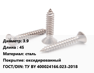 Саморез 3.9 L=45 сталь оксидированный ГОСТ: ТУ BY 400024166.023-2018