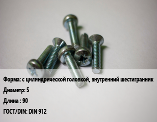 Винт с цилиндрической головкой, внутренний шестигранник 5х90 DIN 912