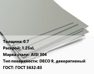 Лист нержавеющий 0.7 1.25хL Сталь: AISI 304 Тип:DECO 9, декоративный ГОСТ 5632-83